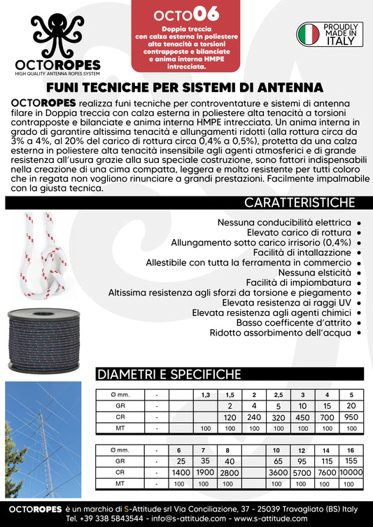 FUNI TECNICHE PER SISTEMI DI ANTENNA OCTOROPES DYNEEMA/POLIESTERE (OCTO6) Bobina 100mt.