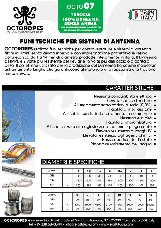 FUNI TECNICHE PER SISTEMI DI ANTENNA OCTOROPES DYNEEMA PURO (OCTO7) Bobina 100mt.